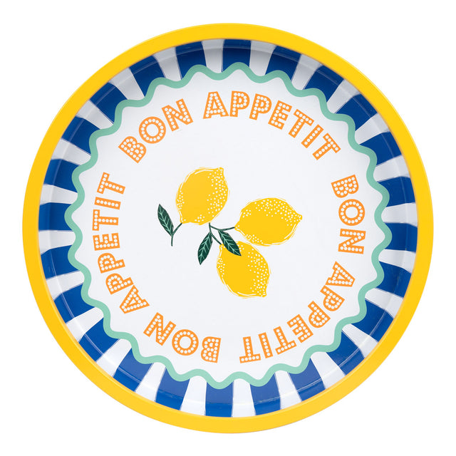 Add a fresh spring look to your home with this stunning mini tray, featuring a stunning lemon motif print with a blue striped border and contrasting yellow trimming that will inject a Mediterranean feel into your kitchen with deep sides, excellent for serving up drinks or afternoon tea, cakes, and sandwiches, and great for summer garden parties.