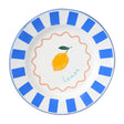 This gorgeous dinner plate features a playful bright lemon motif with a striped blue border that will inject a Mediterranean sunshine to your meals, made from hardwearing, lightweight and shatterproof enamel hand finished and dipped multiple times to achieve its vibrant colours , great for both picnics and relaxed indoor dining & summer garden parties.