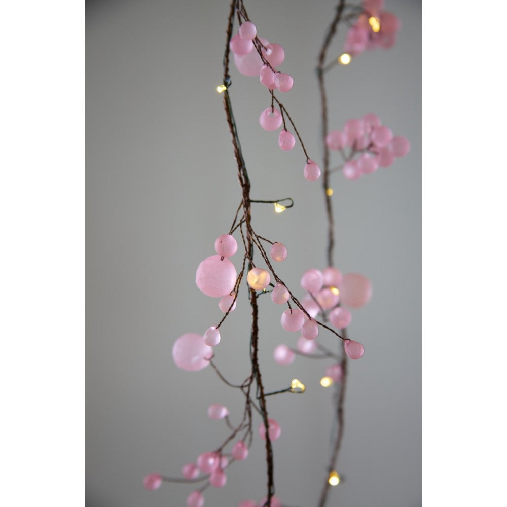 Featuring delicate matt pink acrylic crystals beads entwined with 100 warm white LEDs that sparkle with every glow, they cast a mesmerising light creating an intimate atmospheres in bedrooms, or living rooms, place on your mantlepiece or window sills for a dazzling light display that's will brighten up your home