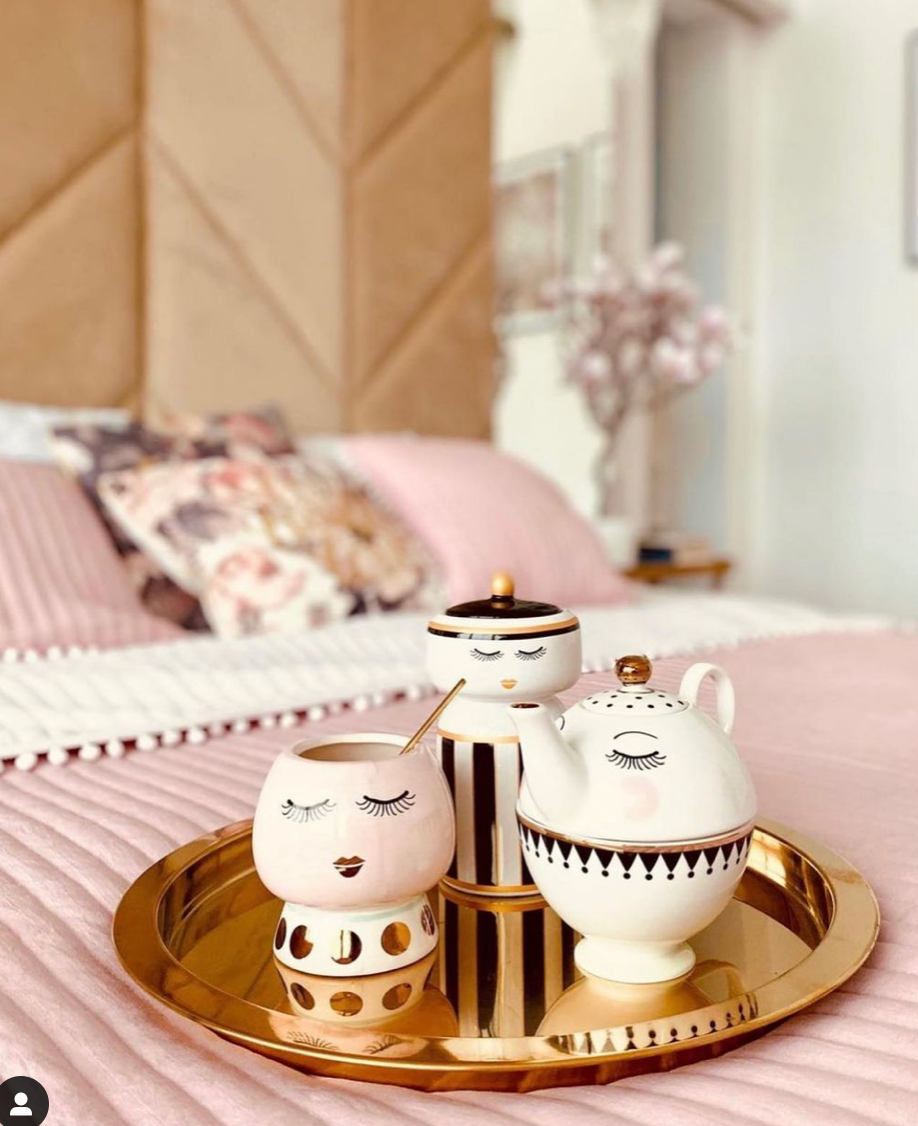 Add some vintage charm to your home with this beautiful and playful planter in pastel rose colour with Miss Etoile iconic pretty eyes and gold dots detailing at the base, that will brighten any room.