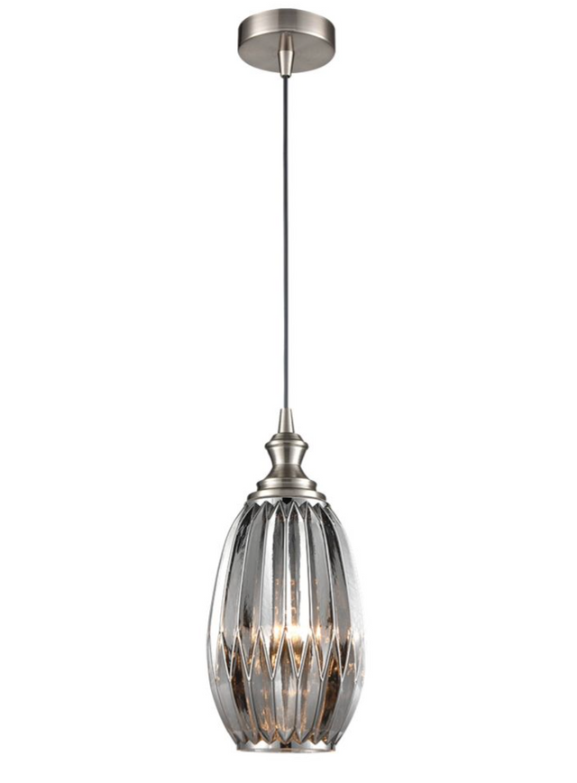 Draw attention to your lighting with this elegant pendant, the design combines a contemporary smoked ribbed glass shade, with a beautiful satin nickel metal work.