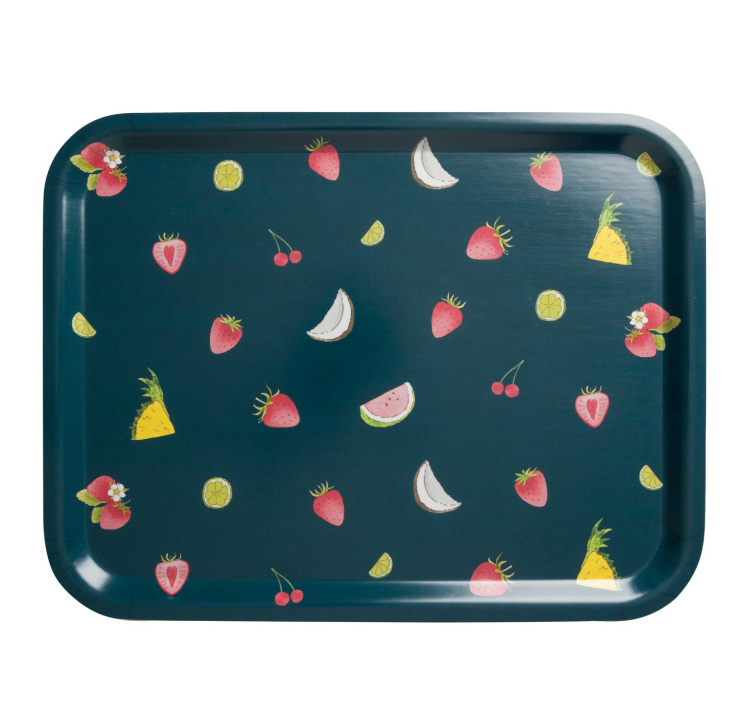 Add a summer look to your home with this stylish handmade from FSC-certified Birchwood, in a gorgeous dark blue colour dotted with delicious summer fruits excellent for serving drinks and food, or making a beautiful display in any home.